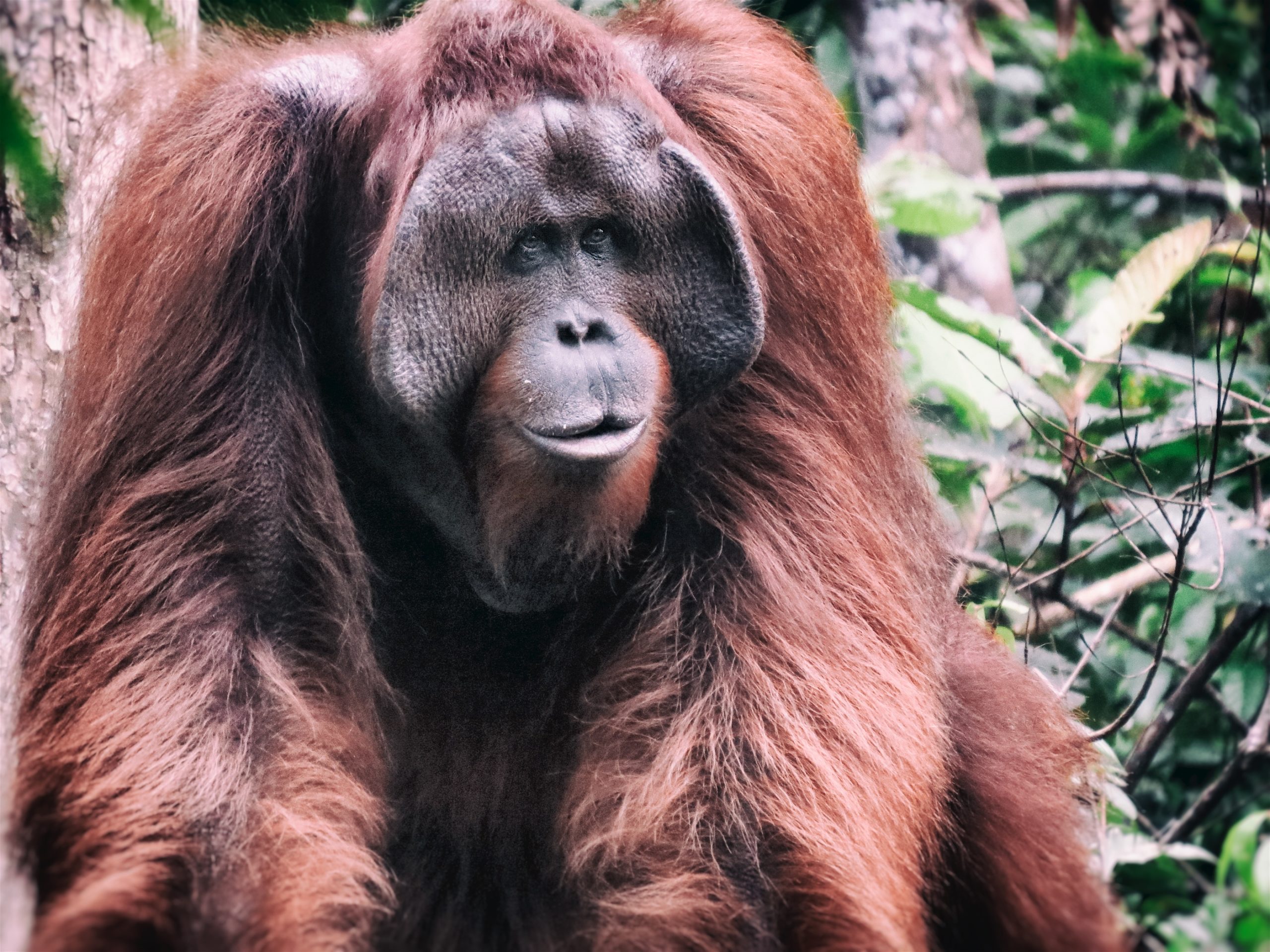Here I was, floating somewhere on the Sekonyer River of Borneo following the footsteps of Dr. Biruté Galdikas, a paleoanthropologist that studied under Louis Leakey. These folks dedicated their sanity and grit to survive this place that consumes you and eats you whole, the tropics of southeast Asia. Imagine days of solitude wading through tannic swamps, shrill cicadas threatening deafness, and a permeating humidity so thick it weighs each breath with heaviness. Days, years, lifetimes spent following our 96% DNA-related relatives. The word orangutan is derived from the Indonesian language. “Orang” means person and “hutan” means forest. They truly are “forest people” and spend most of their time swinging from limbs with their long arms.